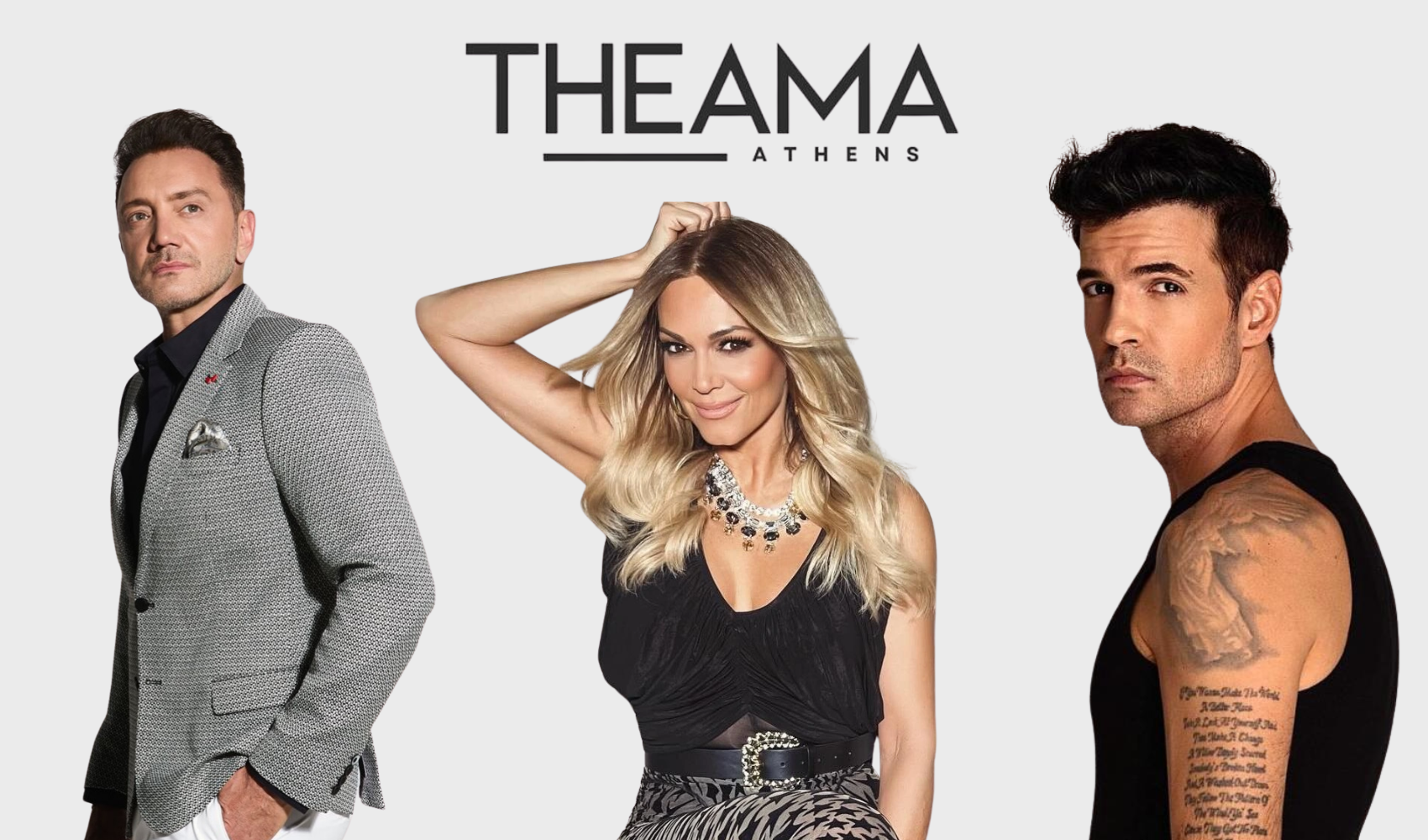 Η συνεργασία αυτών των τριών κορυφαίων καλλιτεχνών στη σκηνή του Theama είναι κάτι παραπάνω από ένα μουσικό πρόγραμμα. Είναι ένα ταξίδι γεμάτο ένταση, χορό και αξέχαστες μελωδίες. Από την πρώτη στιγμή της άφιξής σας στον άνετο χώρο μας, με την ευκολία του parking με παρκαδόρους, μέχρι το τελευταίο χειροκρότημα, το Theama υπόσχεται να σας προσφέρει μια νύχτα που θα μείνει χαραγμένη στη μνήμη σας.
